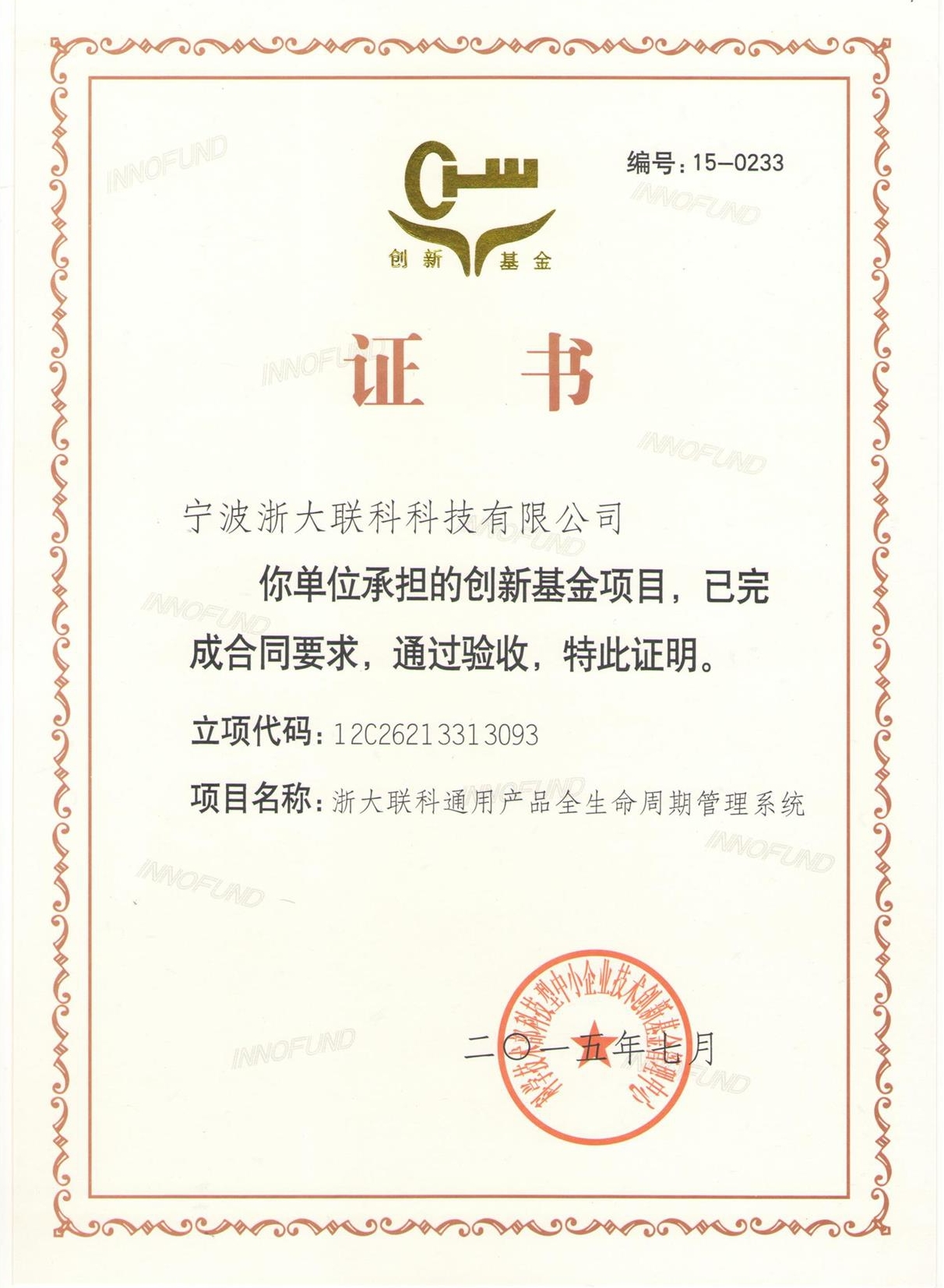 近日,浙大联科的《浙大联科通用产品全生命周期管理系统》创新基金项目顺利通过验收并取得验收证书。科技创新基金是1999年经国务院批准,专项用于扶持和引导科技型企业技术创新活动的政府专项资金。创新基金在促进中小企业技术创新,优化创新创业环境等方面发挥了重要促进作用。